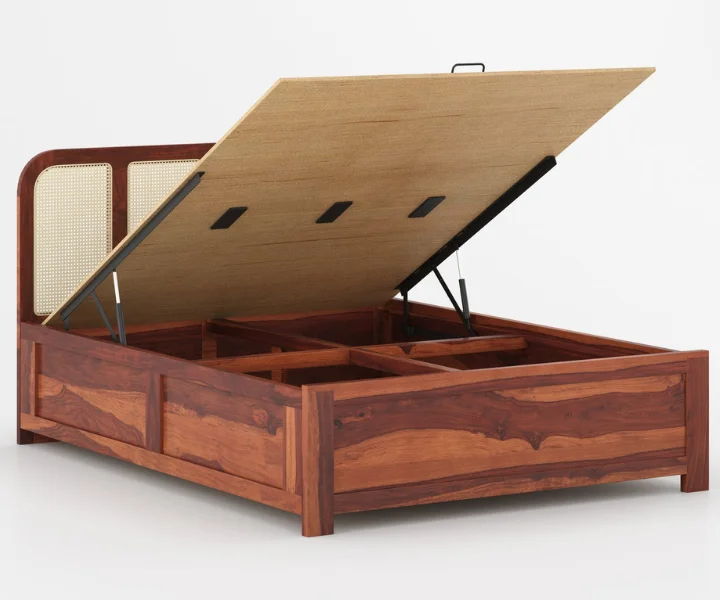 Tusker Sheesham Wood Bed Hydraulic Storage