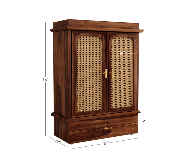 - Amogh Sheesham Wood Home Temple with Cane Doors & Drawer Storage. The top of the unit is made in a triple layer with a small dome-like pattern at various spots. It has two doors in front, which are further indented with curio design. A pull-out tray and a drawer follow the temple. Legs are carved with curly brackets at the inverted sides.