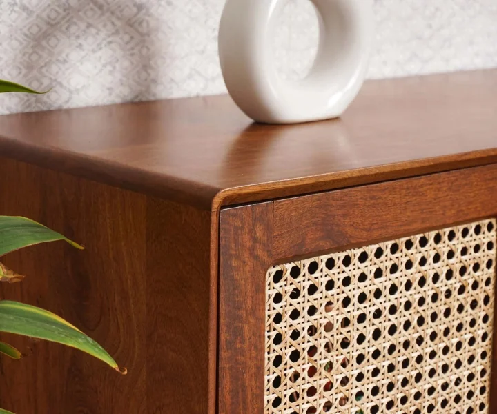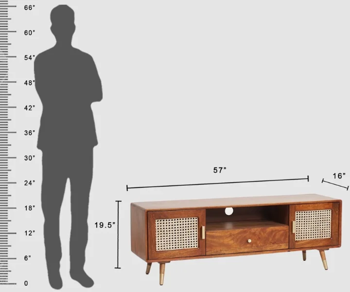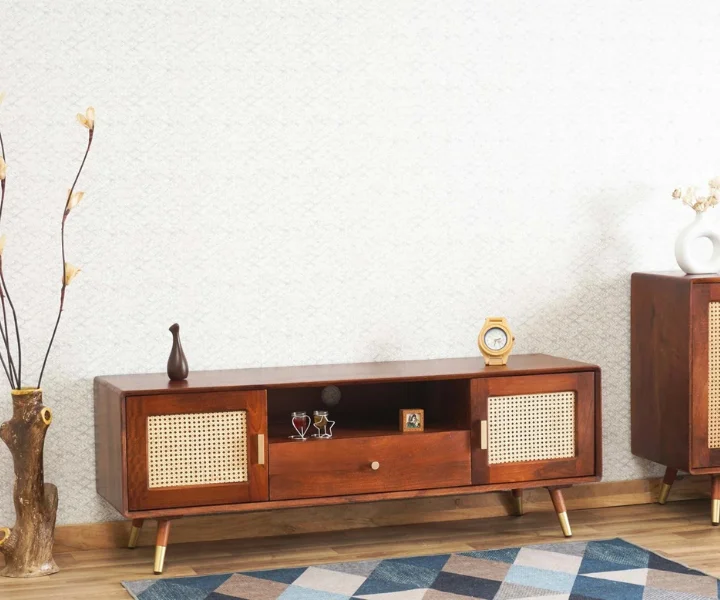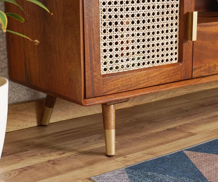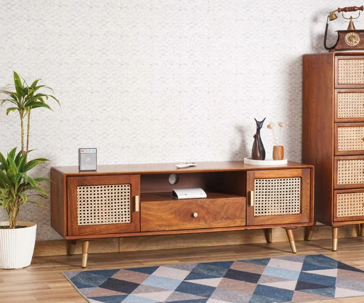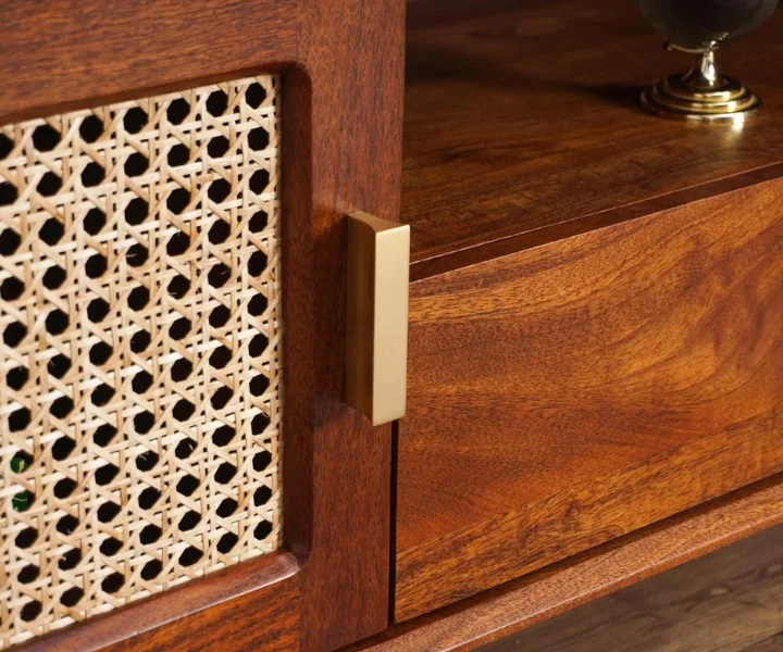Boston Solid Wood Rattan Cane Tv Cabinet is a perfect solid wood Tv Cabinet. Use of Mango Wood as primary material gives this Tv Cabinet a solid & sturdy look. Secondary material is used as Rattan Cane/MDF is used in the Drawer Bottom & Backside. We offer free country-wide shipping and free installation service. The wood used in the furniture is perfectly seasoned for optimum moisture content, to reduce the possibility of seasonal expansion or contraction of the products