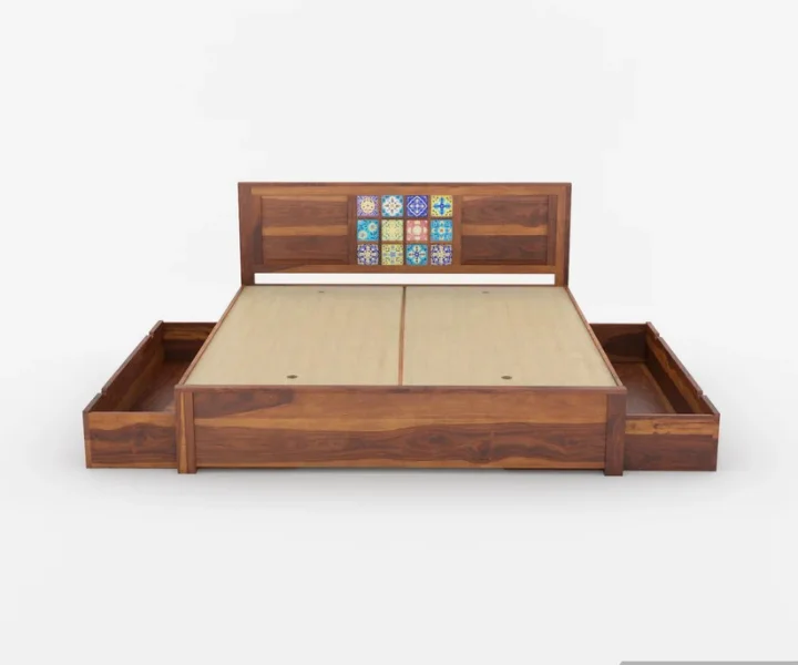 The Bunny Bed with Drawer Storage(King Size, Teak Finish) is a masterpiece of functionality and elegance, tailored for the modern homeowner who seeks convenience without compromising on style. Constructed from durable Sheesham wood and coated in a warm teak finish, this bed brings out the beauty of natural wood grains while ensuring long-lasting durability. Designed for practicality, it features spacious drawer storage on both sides and a contemporary headboard with upholstered cushioning and built-in shelving, offering an unbeatable blend of comfort, utility, and aesthetics.