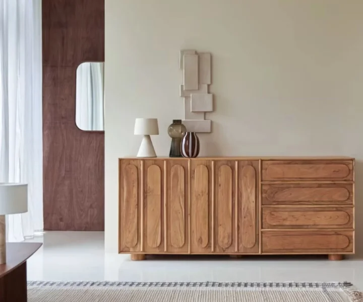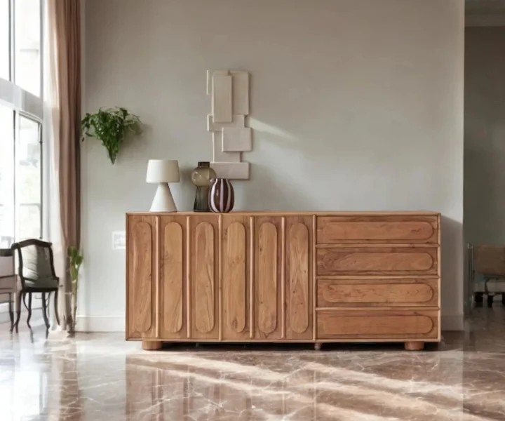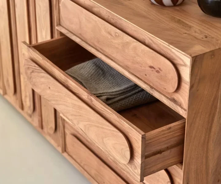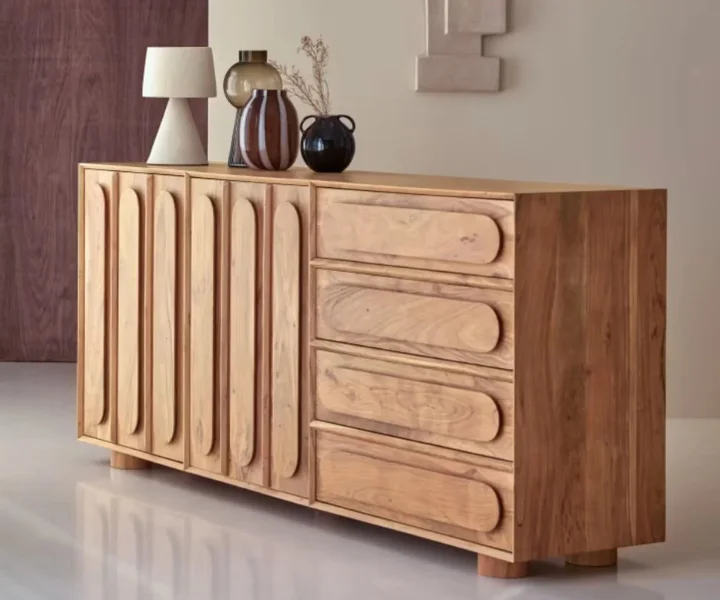 Chicago Solid Wood Two Door Three drawer Storage Cabinet is a perfect solid wood Tv Cabinet. Use of Acacia Wood as primary material gives this Tv Cabinet a solid & sturdy look. Secondary material is used as MDF is used in the Backside and Drawer Bottom. We offer free country-wide shipping and free installation service. The wood used in the furniture is perfectly seasoned for optimum moisture content, to reduce the possibility of seasonal expansion or contraction of the products.