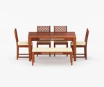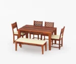 The stunning Ananta 6-seater dining table is made in a beautiful finish, crafted perfectly by vinayakartplace This magnificent piece of furniture is designed to elevate the decor of your dining room with its classic and sophisticated design. Crafted from premium-quality Sheesham wood, this Dining Set is built to last and withstand time. The table’s sturdy legs ensure optimal stability, while the smooth surface makes it easy to clean and maintain. With its impeccable design and unparalleled comfort, the Maron 6-seater dining table set is a must-have for any modern home. Experience the ultimate dining experience with this exquisite furniture piece from Maron .