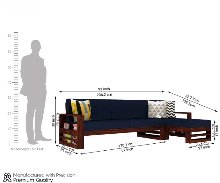 2. This L-shape wooden sofa is finely crafted from premium-quality solid wood.