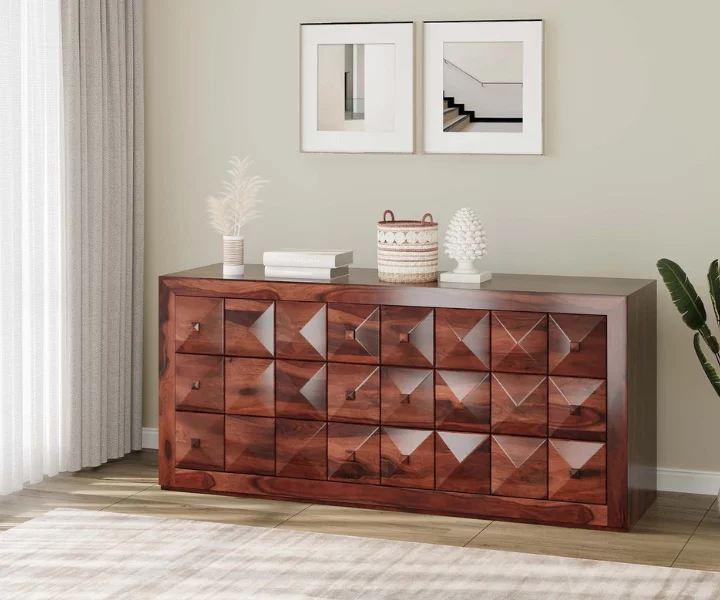 2. This sideboard is made up of high-quality Sheesham wood that ensures durability and gives a solid strength to the design.