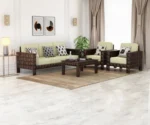 Morris 3+1+1 Wooden Sofa Set in Honey Finish is designed to bring a warm, inviting charm to spacious Indian living rooms and family seating areas. Crafted from solid Sheesham wood, the robust frame ensures excellent durability, strength, and long-term reliability for everyday use. The natural honey finish beautifully enhances the wood grain, giving the sofa set a lighter, more cheerful appeal, while the cream fabric upholstery adds comfort and blends effortlessly with both traditional and contemporary interiors. Featuring a comfortable 17-inch seating height, a generously sized three seater measuring 81 L x 31 W x 34 H inches, and well-balanced single seaters at 33 L x 31 W x 34 H inches, this 3+1+1 sofa set offers ample seating for family gatherings and guests. Delivered pre-assembled and backed by a 36-month warranty, it combines timeless style, comfort, and dependable craftsmanship.