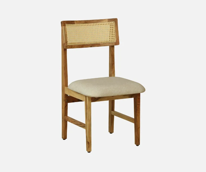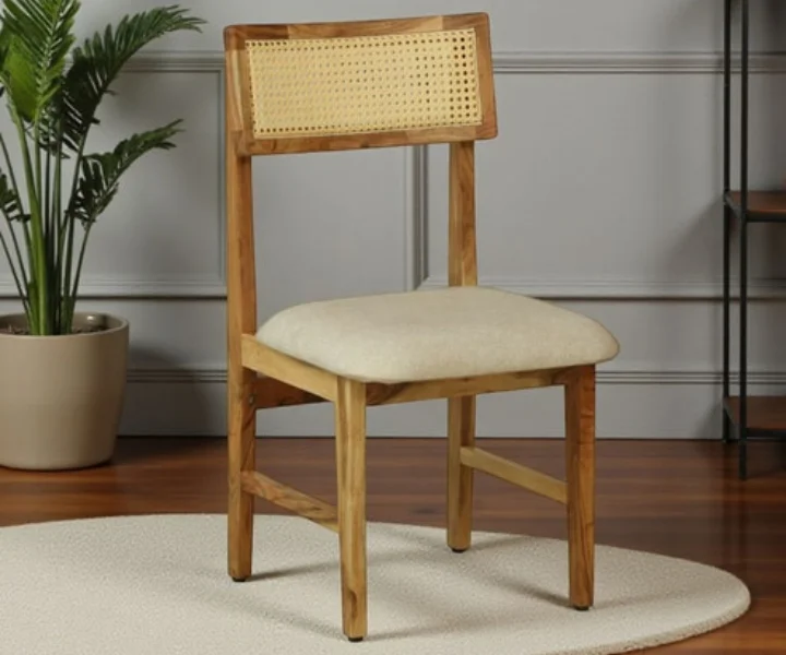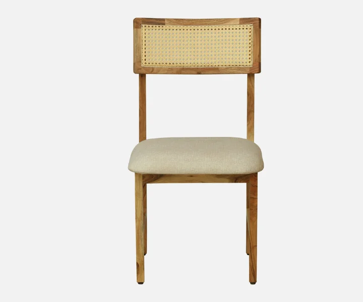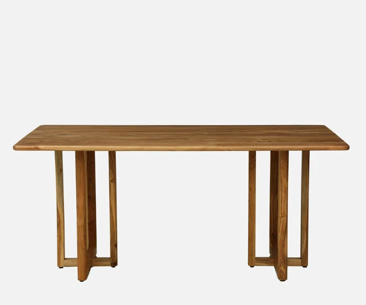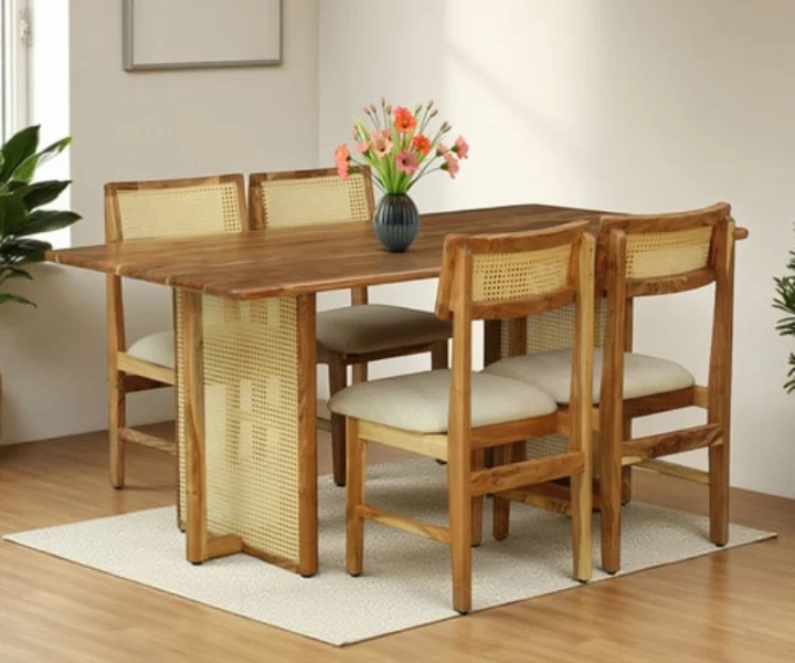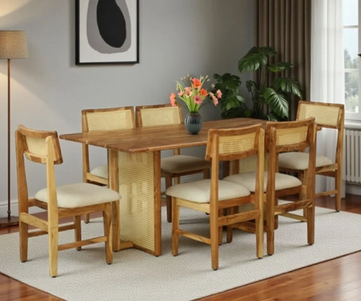 Bring warmth and timeless beauty to your dining space with the Ortrand Acacia Wood 6 Seater Dining Set In Natural Finish