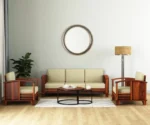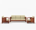 Parsons 3+1+1 Wooden Sofa Set in Honey Finish is crafted to bring a warm, natural charm to spacious Indian living rooms and family seating spaces. Made from solid Sheesham wood, the robust frame ensures excellent durability, strength, and long-lasting everyday performance. The light honey finish beautifully enhances the natural wood grain, giving the sofa set a bright and welcoming appearance, while the cream fabric upholstery adds soft comfort and blends effortlessly with both traditional and modern interiors. Designed with a relaxed 16-inch seating height, the spacious three seater measures 79 L x 31 W x 35 H inches and is paired with well-sized single seaters of 30 L x 31 W x 35 H inches, offering ample seating for family and guests. Delivered pre-assembled and backed by a 36-month warranty, this 3+1+1 sofa set combines comfort, durability, and timeless wooden craftsmanship.