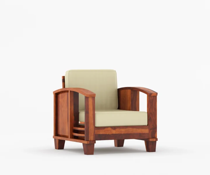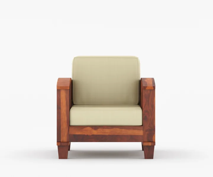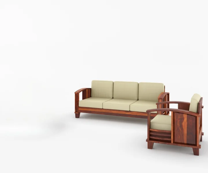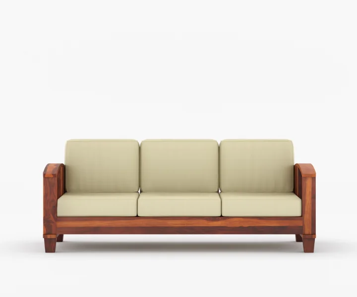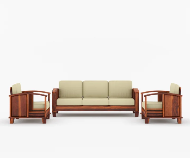 Parsons 3+1+1 Wooden Sofa Set in Honey Finish is crafted to bring a warm, natural charm to spacious Indian living rooms and family seating spaces. Made from solid Sheesham wood, the robust frame ensures excellent durability, strength, and long-lasting everyday performance. The light honey finish beautifully enhances the natural wood grain, giving the sofa set a bright and welcoming appearance, while the cream fabric upholstery adds soft comfort and blends effortlessly with both traditional and modern interiors. Designed with a relaxed 16-inch seating height, the spacious three seater measures 79 L x 31 W x 35 H inches and is paired with well-sized single seaters of 30 L x 31 W x 35 H inches, offering ample seating for family and guests. Delivered pre-assembled and backed by a 36-month warranty, this 3+1+1 sofa set combines comfort, durability, and timeless wooden craftsmanship.