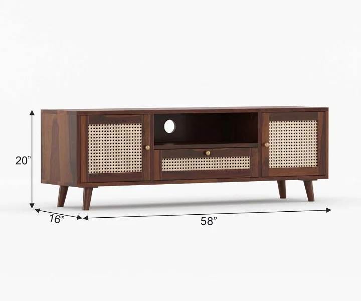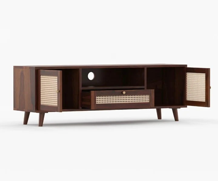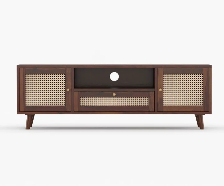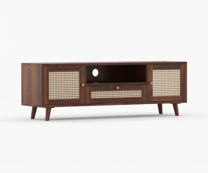 Alan Solid Wood Acacia Cane TV Cabinet