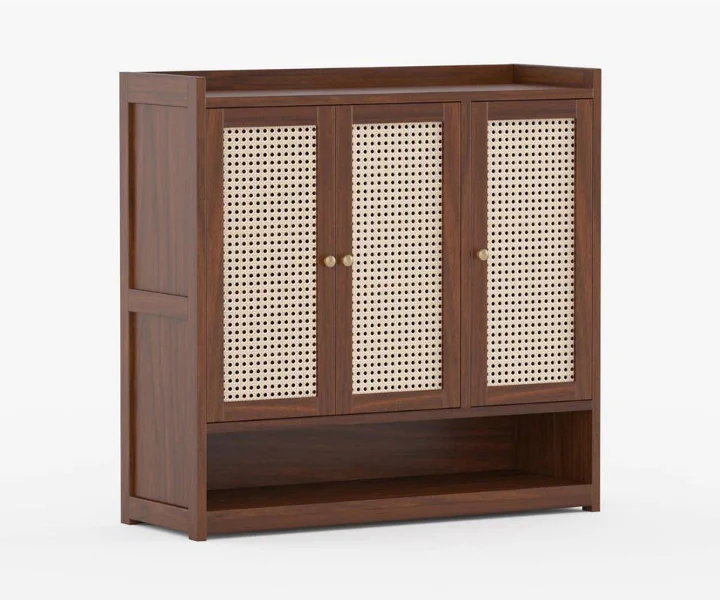 The VSimon Acacia Solid Wood Shoe Rack is a stylish and practical storage solution designed to keep your footwear organised while enhancing your interiors. The shoe rack is rafted from durable mango wood with a rich teak finish. It features elegant cane detailing on the front panels that lends a touch of natural charm. With multiple storage compartments and a flat top surface, this shoe rack is both functional and decorative. It is perfect for entryways, hallways, or bedrooms.
