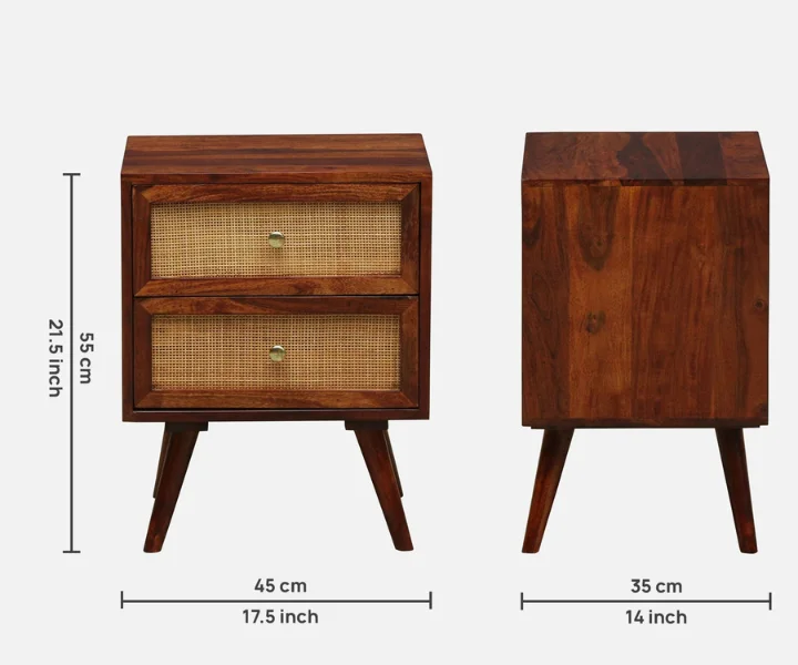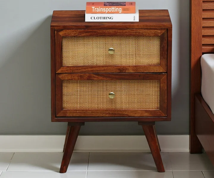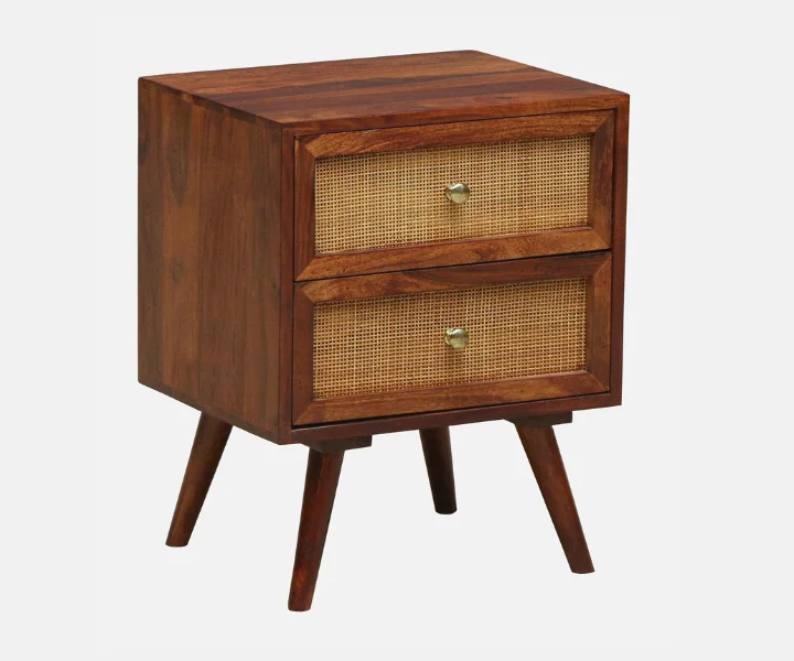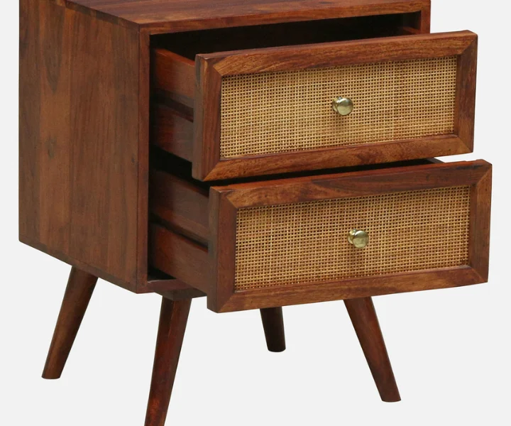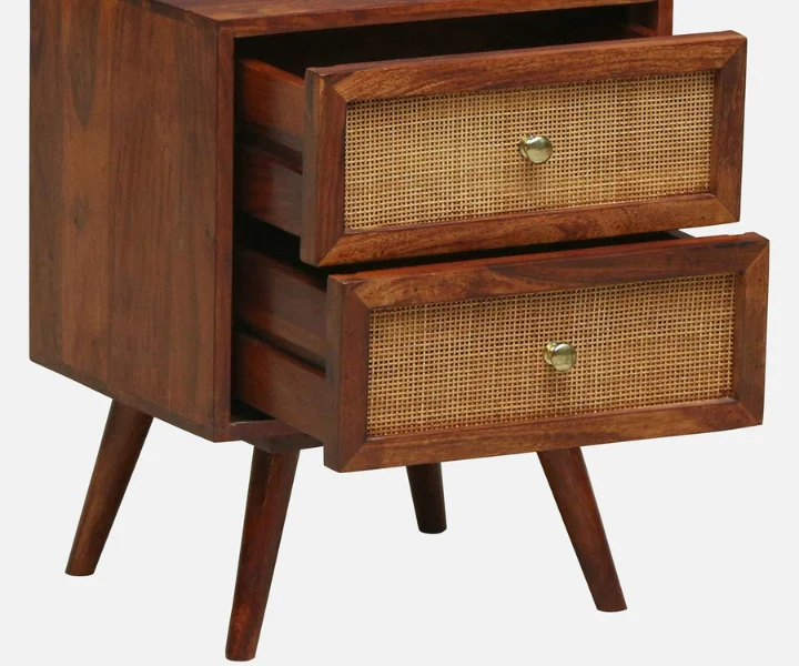Syrus Solid Sheesham Wood Two Drawer Bedside Cane