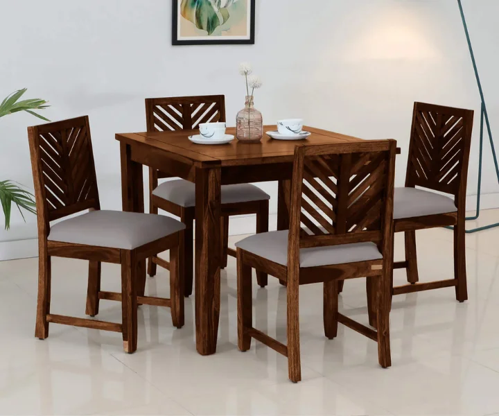 Marin Sheesham Wood 4 Seater Dining Set in Scratch Resistant Provincial Teak Finish