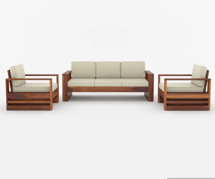 Victor 3+1+1 Wooden Sofa Set in Honey Finish is designed to create a warm, well-organised seating arrangement that suits comfortable everyday living. Crafted from solid Sheesham wood, the sofa set features a strong and neatly constructed frame that supports relaxed daily seating while maintaining a clean and balanced appearance. The honey finish brings out the natural wood grain and adds a soft, inviting tone to the living space, while the cream fabric upholstery keeps the seating comfortable and visually soothing. Designed with a practical 16-inch seating height, the 3+1+1 configuration offers ample seating for family members and guests, making it suitable for regular use and social gatherings. Delivered pre-assembled and supported by a 36-month warranty, this sofa set fits naturally into everyday living spaces, offering comfort, durability, and timeless wooden charm.