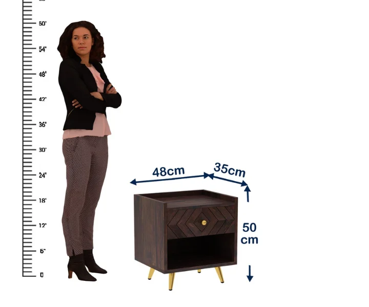 Experience the timeless elegance and durability of the Lyon Solid Sheesham Wood Bedside Table. Crafted with one drawer for convenient storage and a for peace of mind. Made from premium Sheesham wood, this bedside table adds a touch of luxury to any bedroom while guaranteeing long-lasting quality.